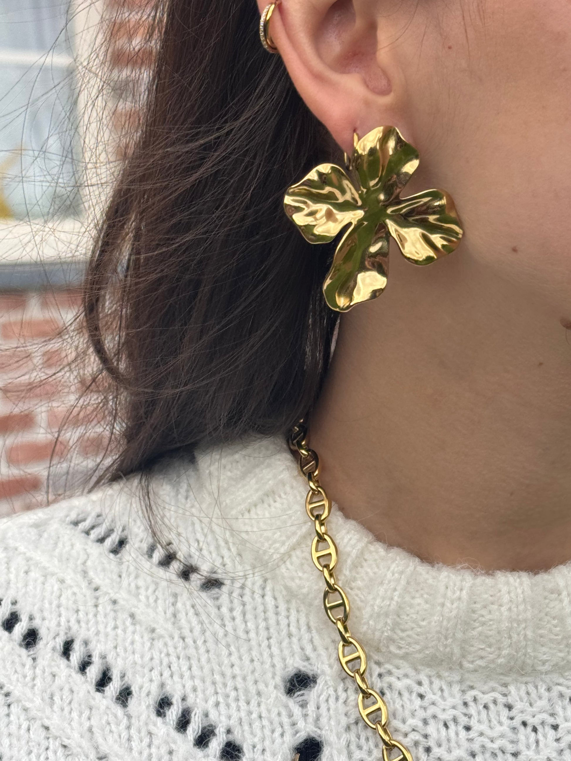 Laissez-vous séduire par cette magnifique paire de boucles d'oreilles ornées de grandes fleurs délicates. Leur design floral généreux apporte une touche de fraîcheur et de romantisme à votre look, tout en restant étonnamment légères pour un confort optimal toute la journée.
