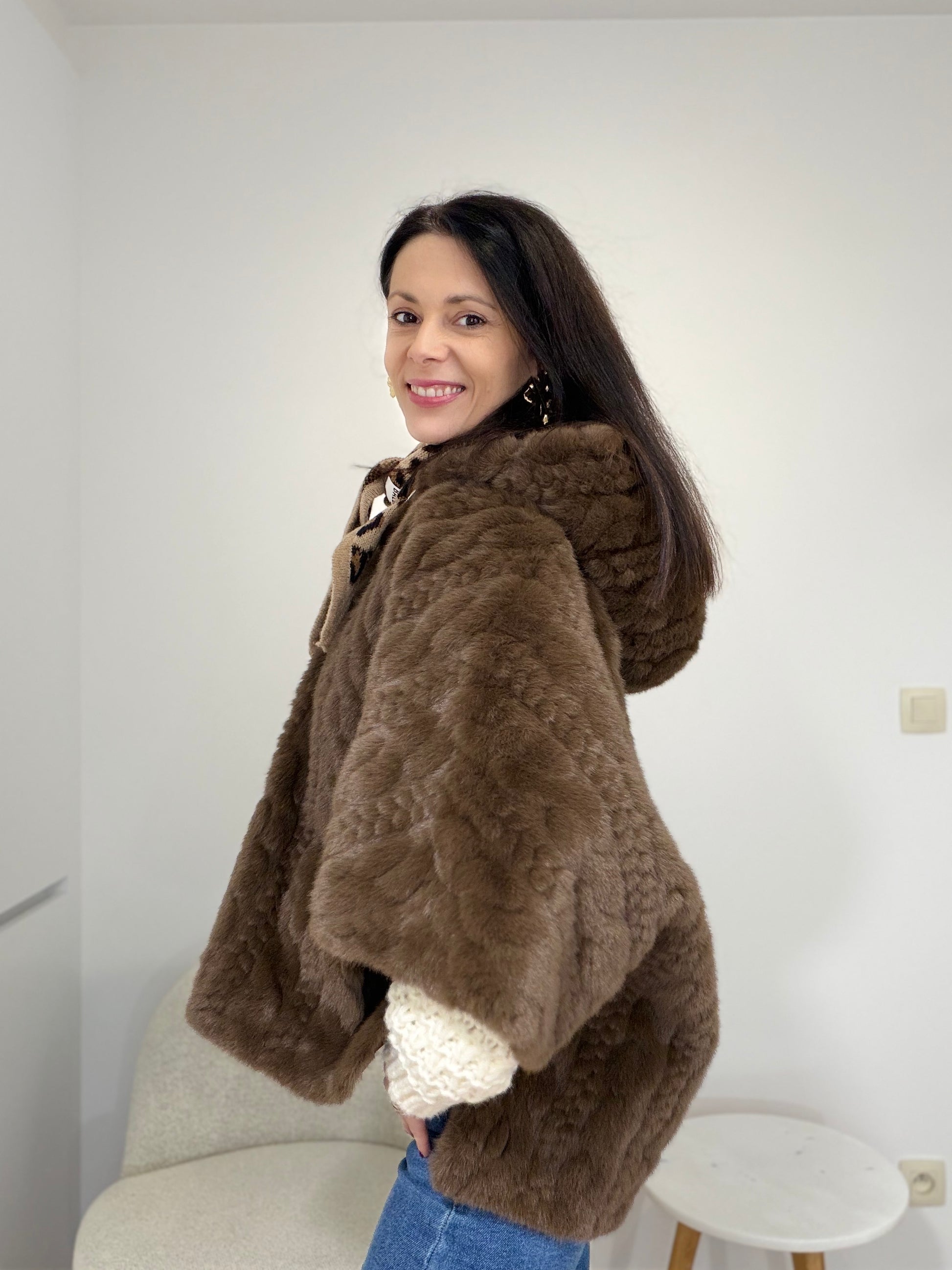 💡 Conseil styling : Portez cette cape sur une robe pour un look sophistiqué, ou sur un pantalon et un top élégant pour une allure chic et moderne. Elle transforme instantanément n'importe quelle tenue en look raffiné.
