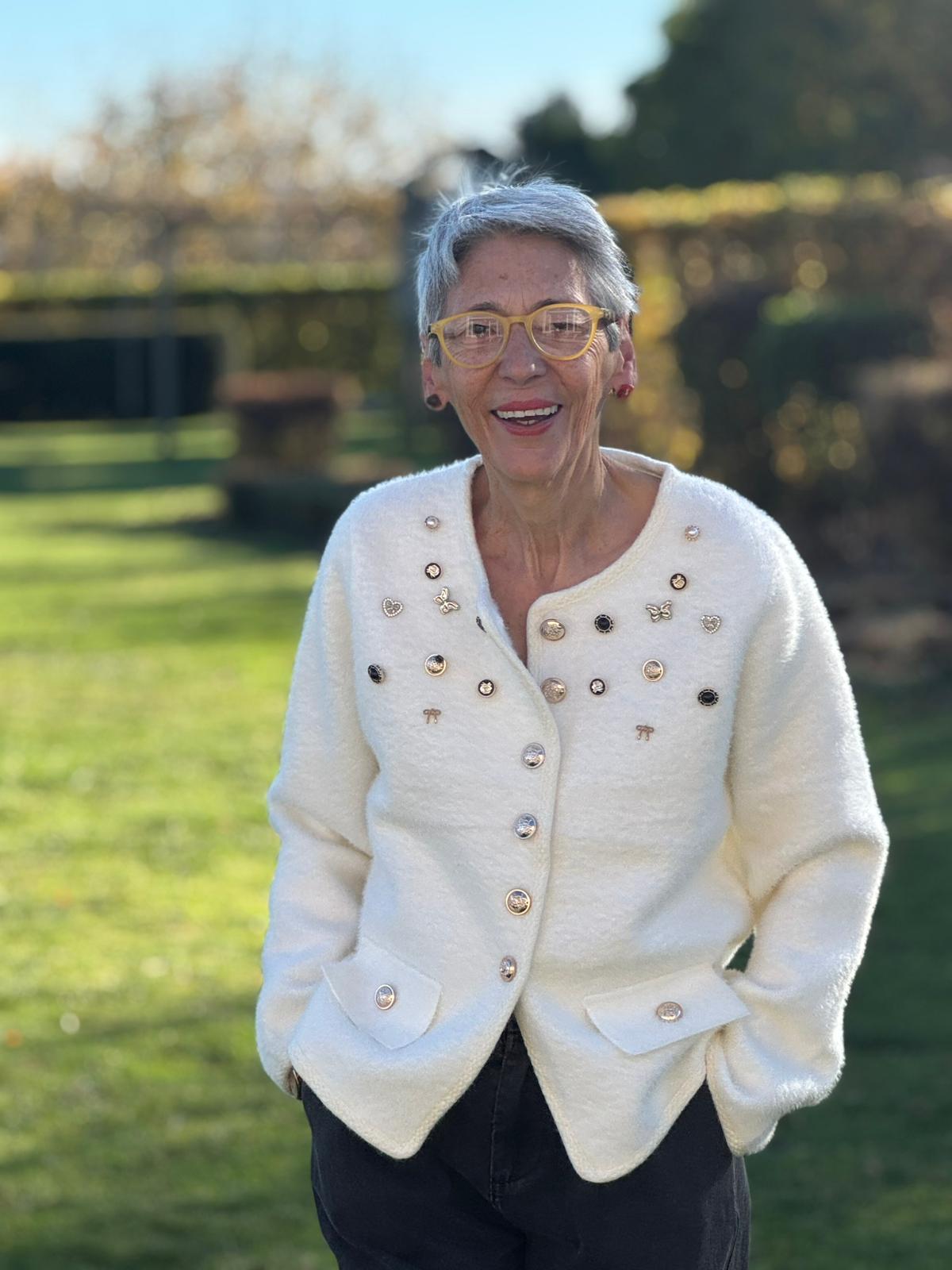 Cardigan élégant et raffiné avec un joli pins sur le devant. Une pièce sophistiquée qui apporte une touche de style à vos tenues.