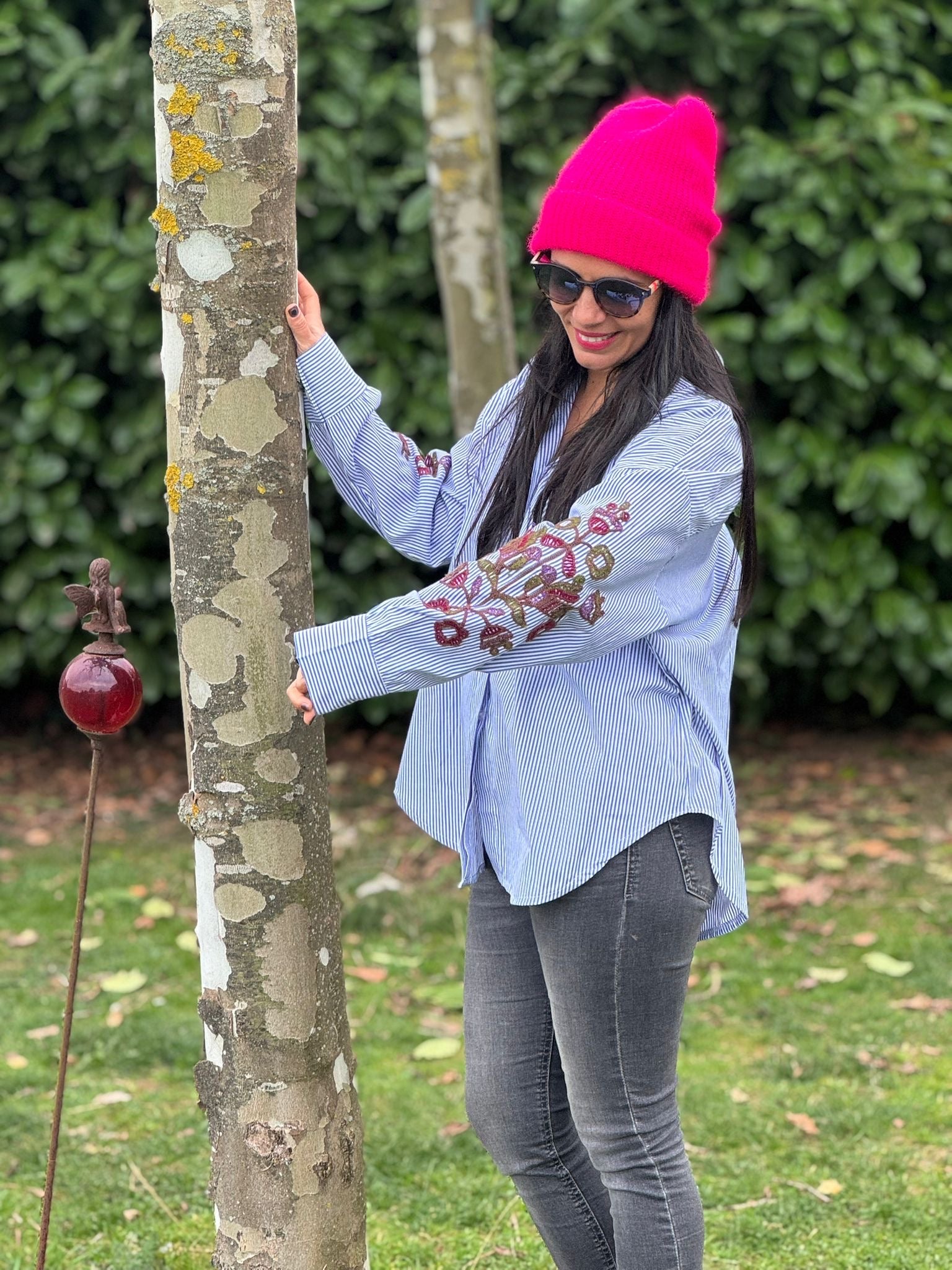 Avec ses jolies broderies délicates sur les manches, cette chemise apporte une touche de féminité et d'originalité à votre garde-robe. Parfaite pour un look chic au bureau ou pour une sortie décontractée, elle se marie facilement avec un jean ou une jupe.