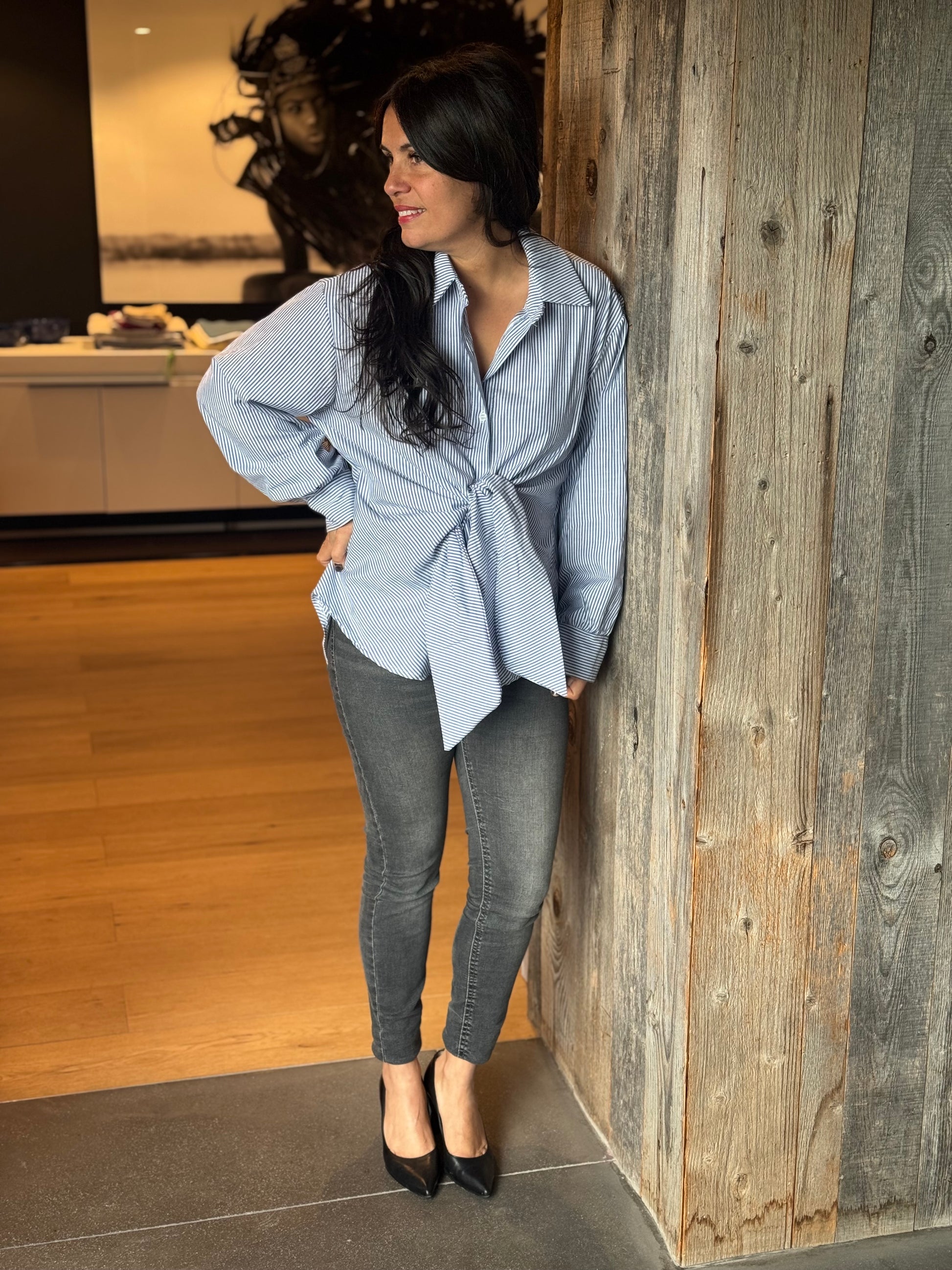 Craquez pour cette chemise rayée bleu et blanc qui allie style intemporel et touche féminine. Son joli nœud à nouer devant apporte cette note chic et romantique qui fait toute la différence.