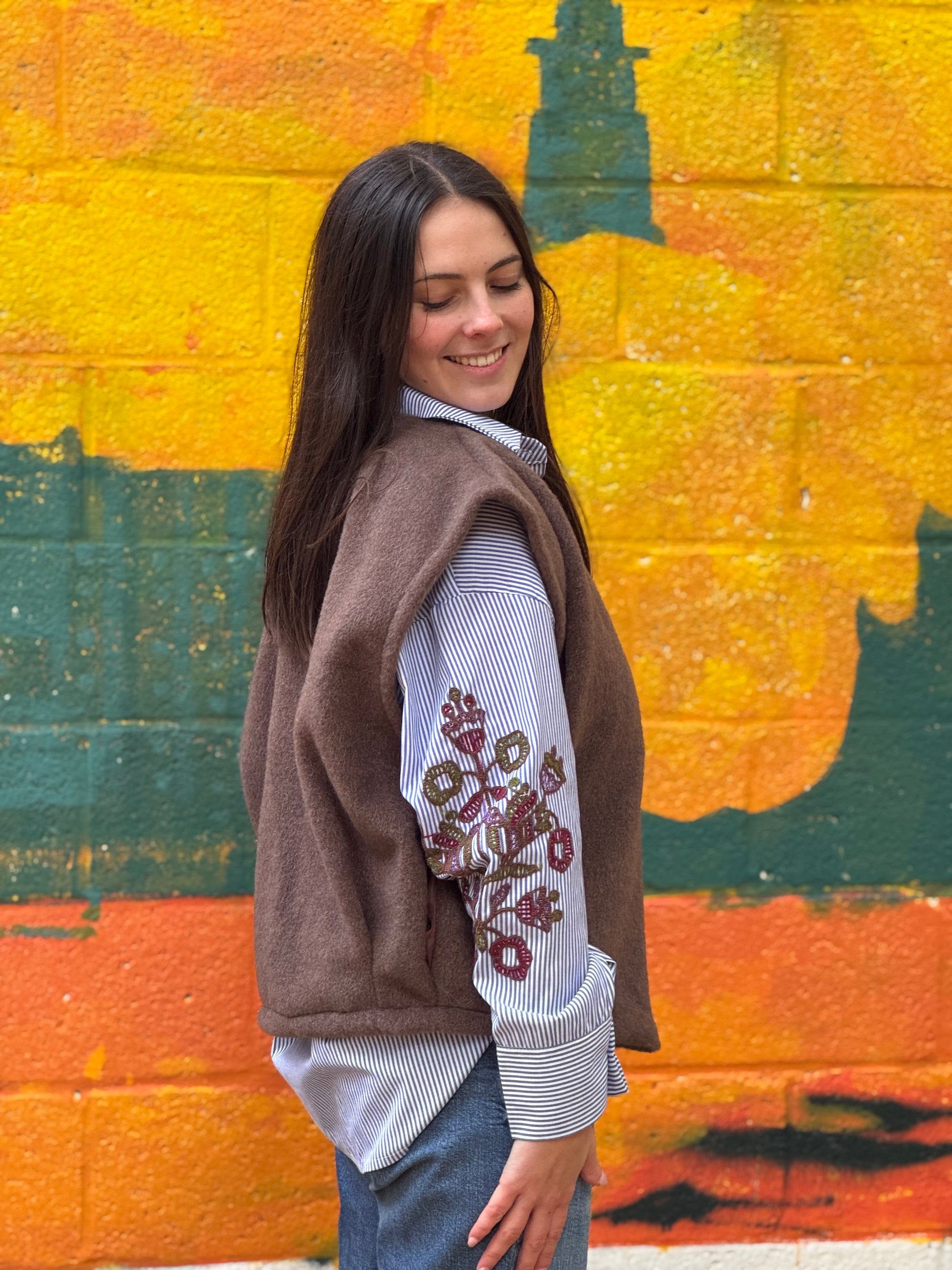Le gilet drap de laine couleur choco qui réchauffe avec style !