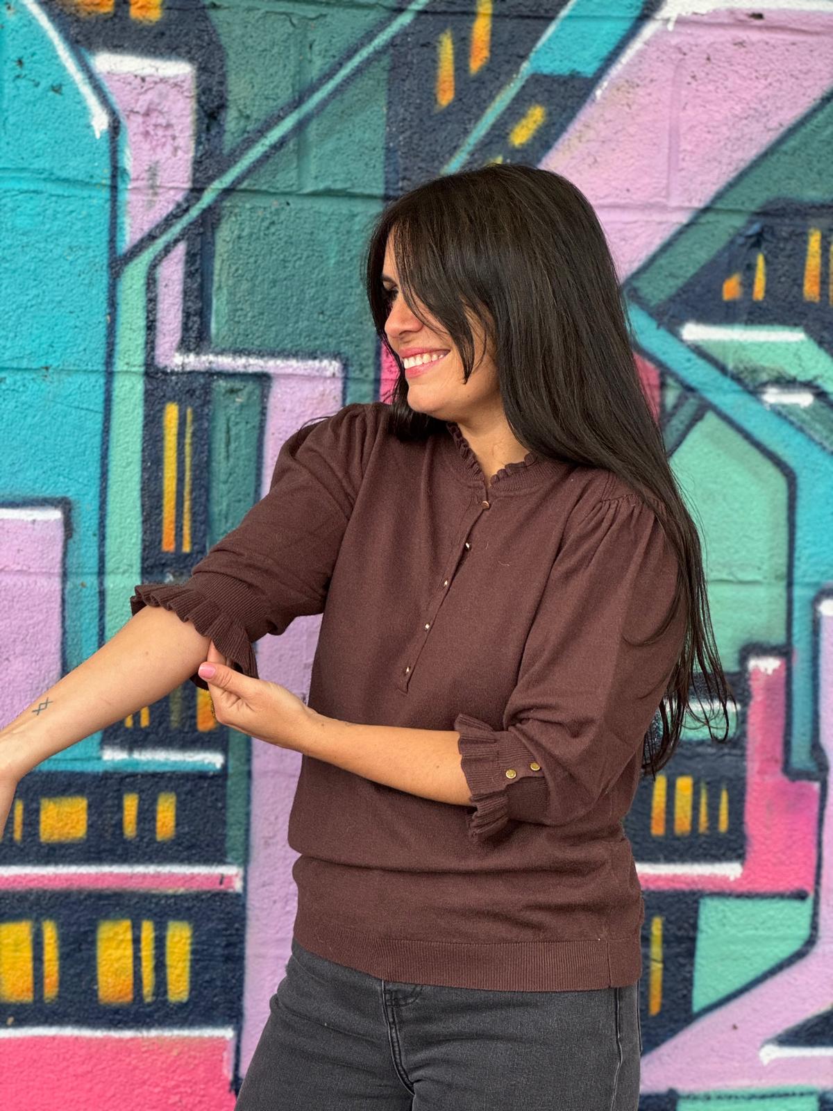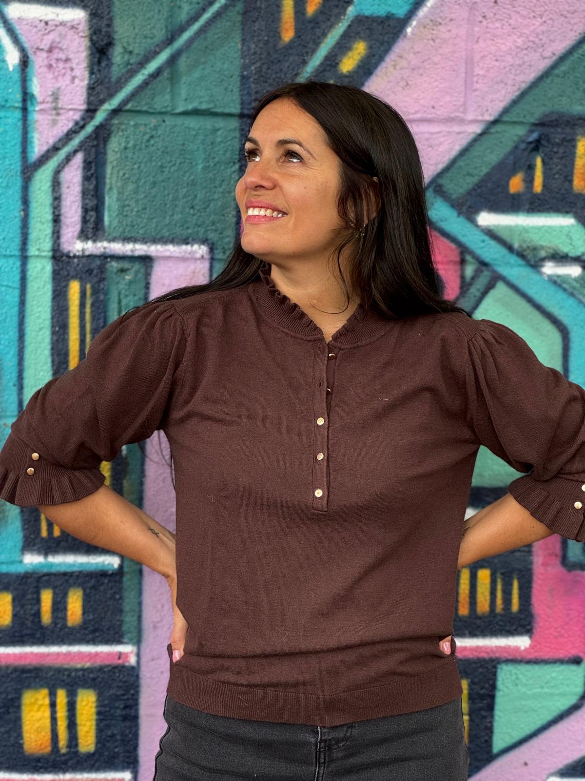 💡 Conseil styling : Portez-le avec un jean et des bottines pour un look casual-chic, ou glissé dans une jupe midi pour une allure plus sophistiquée. Les détails sur le col et les manches ajoutent cette touche féminine qui fait toute la différence !