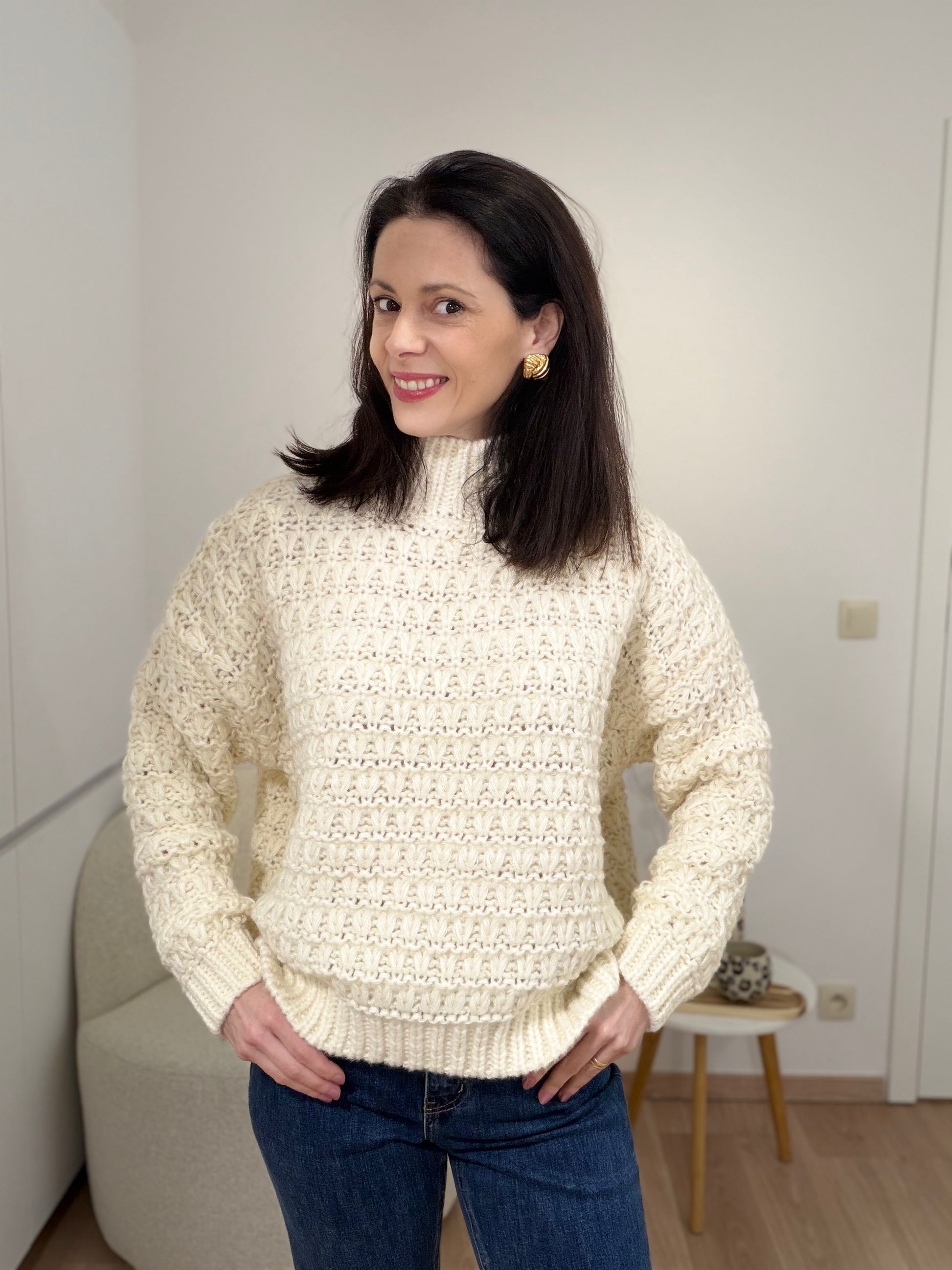 Découvrez ce pull écru qui allie confort exceptionnel et engagement environnemental. Sa matière ultra-douce enveloppe votre peau d'une sensation cocooning, parfaite pour affronter les journées fraîches avec style.