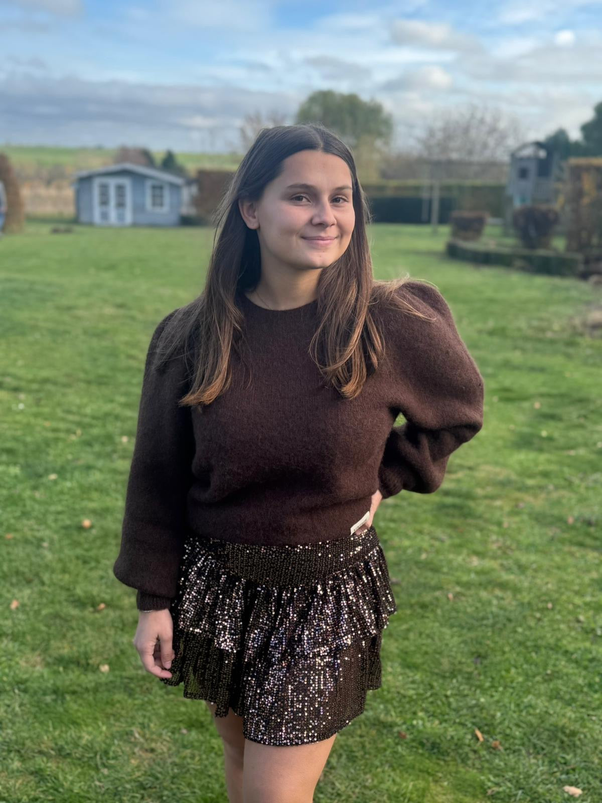 Pull marron d'une douceur exceptionnelle grâce à sa composition en baby alpaga.