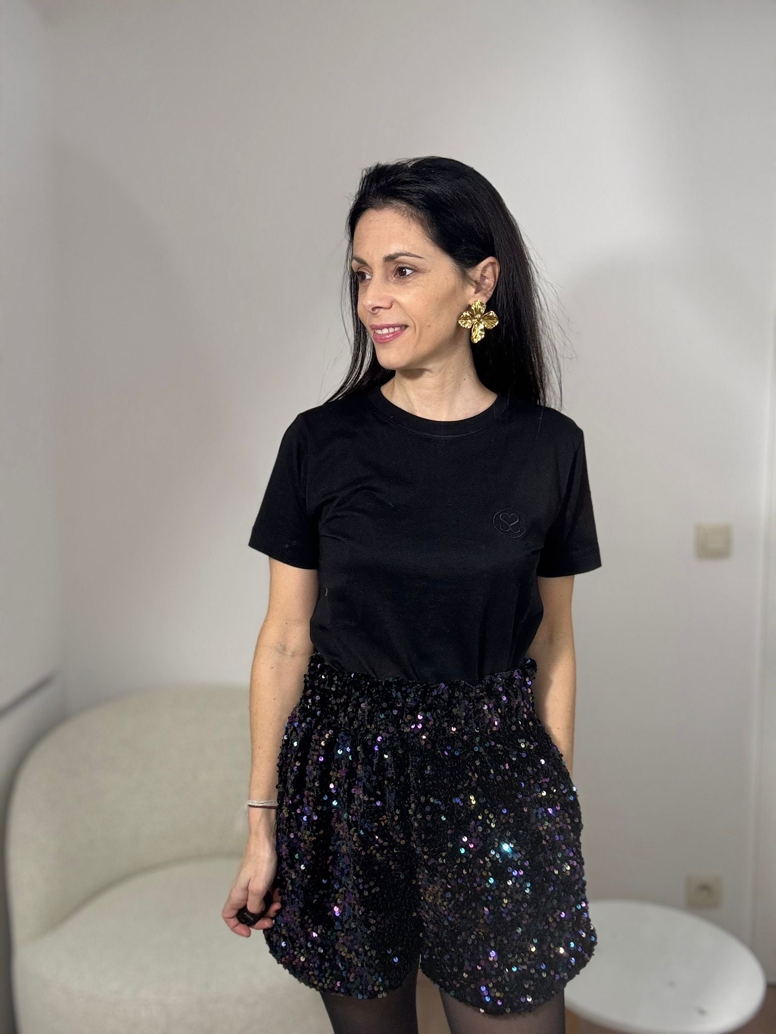 Short pailleté dans une très jolie couleur scintillante qui capte la lumière à chaque mouvement.
