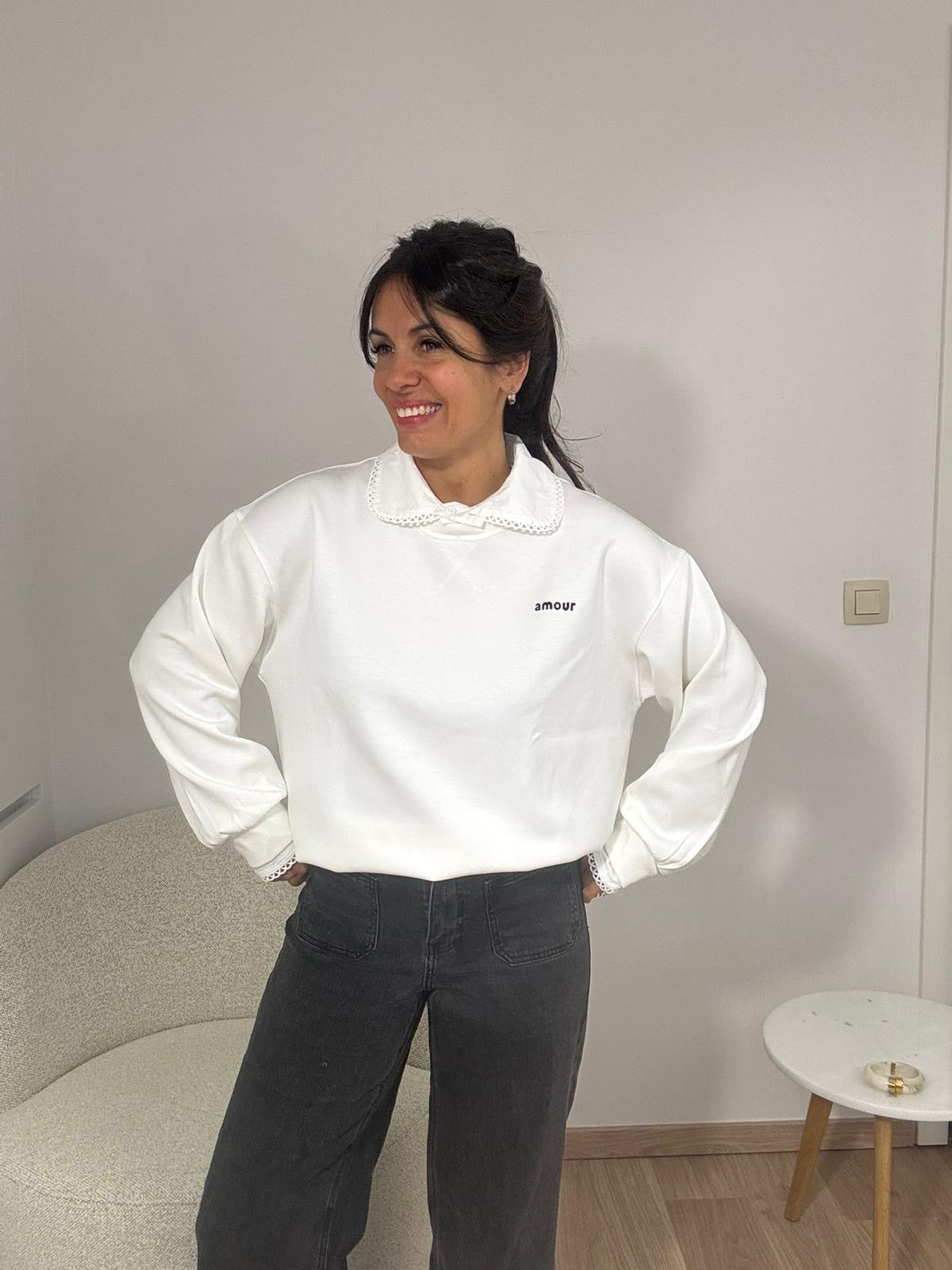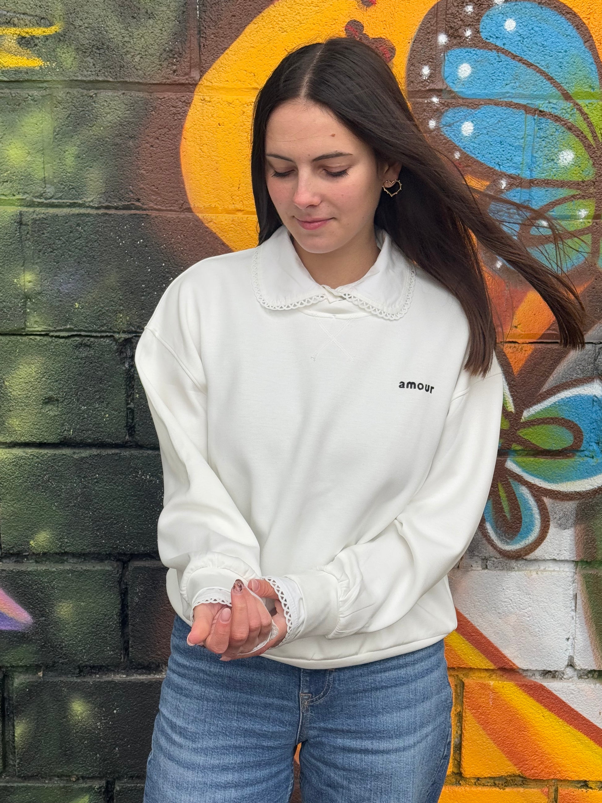 Coup de cœur garanti avec ce sweat blanc "Mon Amour" !
