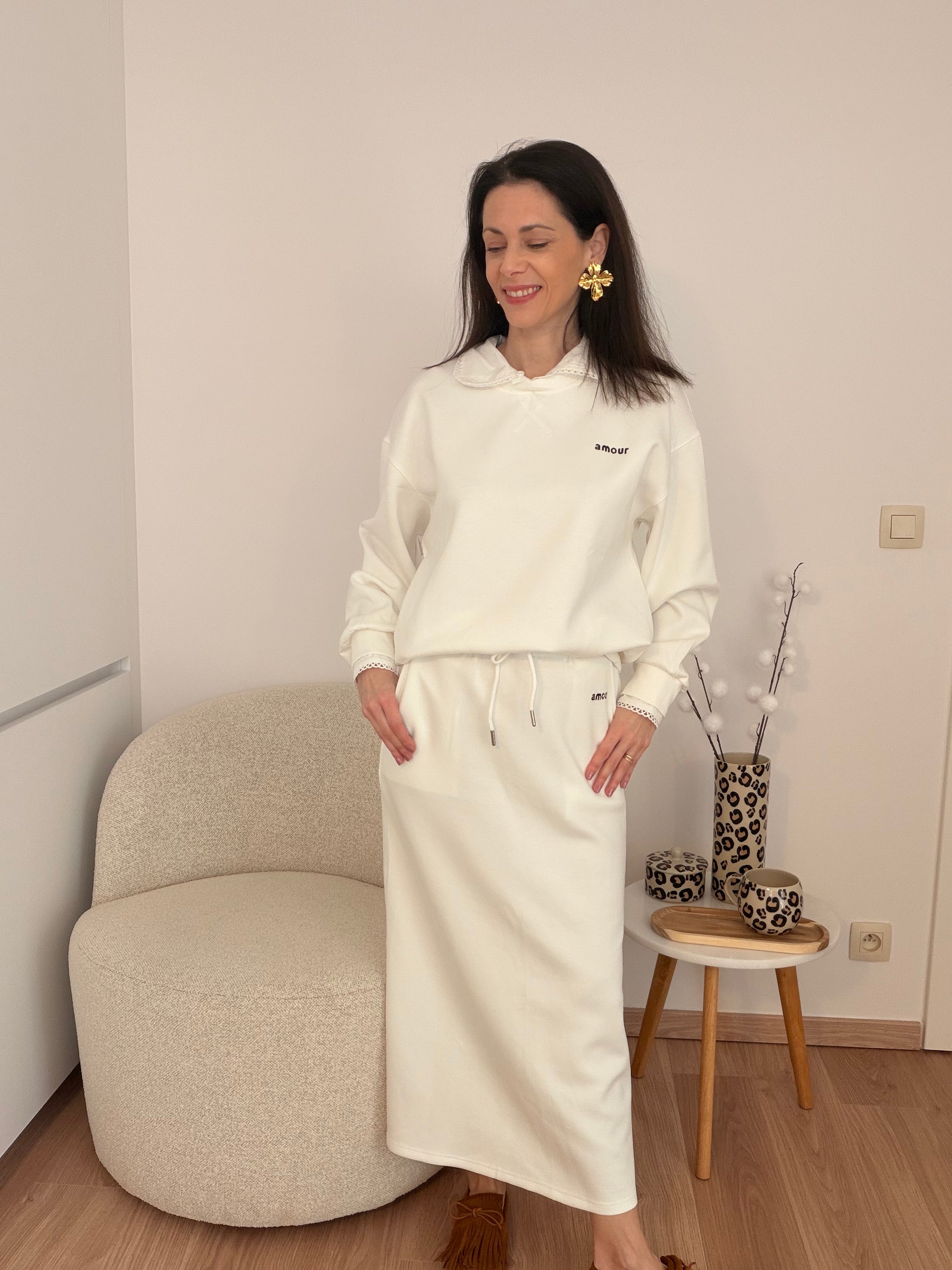 Tombez sous le charme de ce sweat blanc élégant avec son inscription romantique "Mon Amour" en noir qui apporte une touche de douceur à votre look. Parfait pour créer des tenues décontractées mais stylées !
